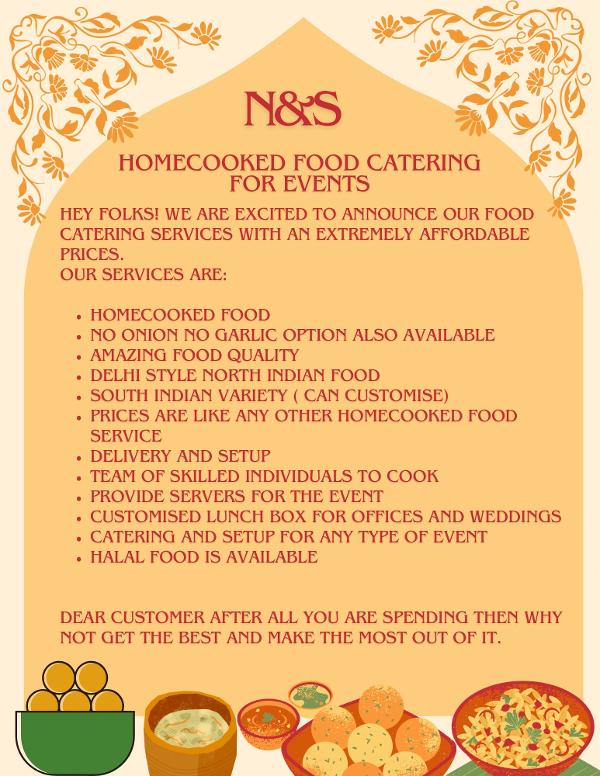 Give us the opportunity and see it for yourself. From customised lunch boxes for any office related events or wedding. We do provide delivery and setup . Delivery charges are based on the distance. It is a home cooked food but we are a team and wish to expand our services. Take a look at Our elaborated menu.